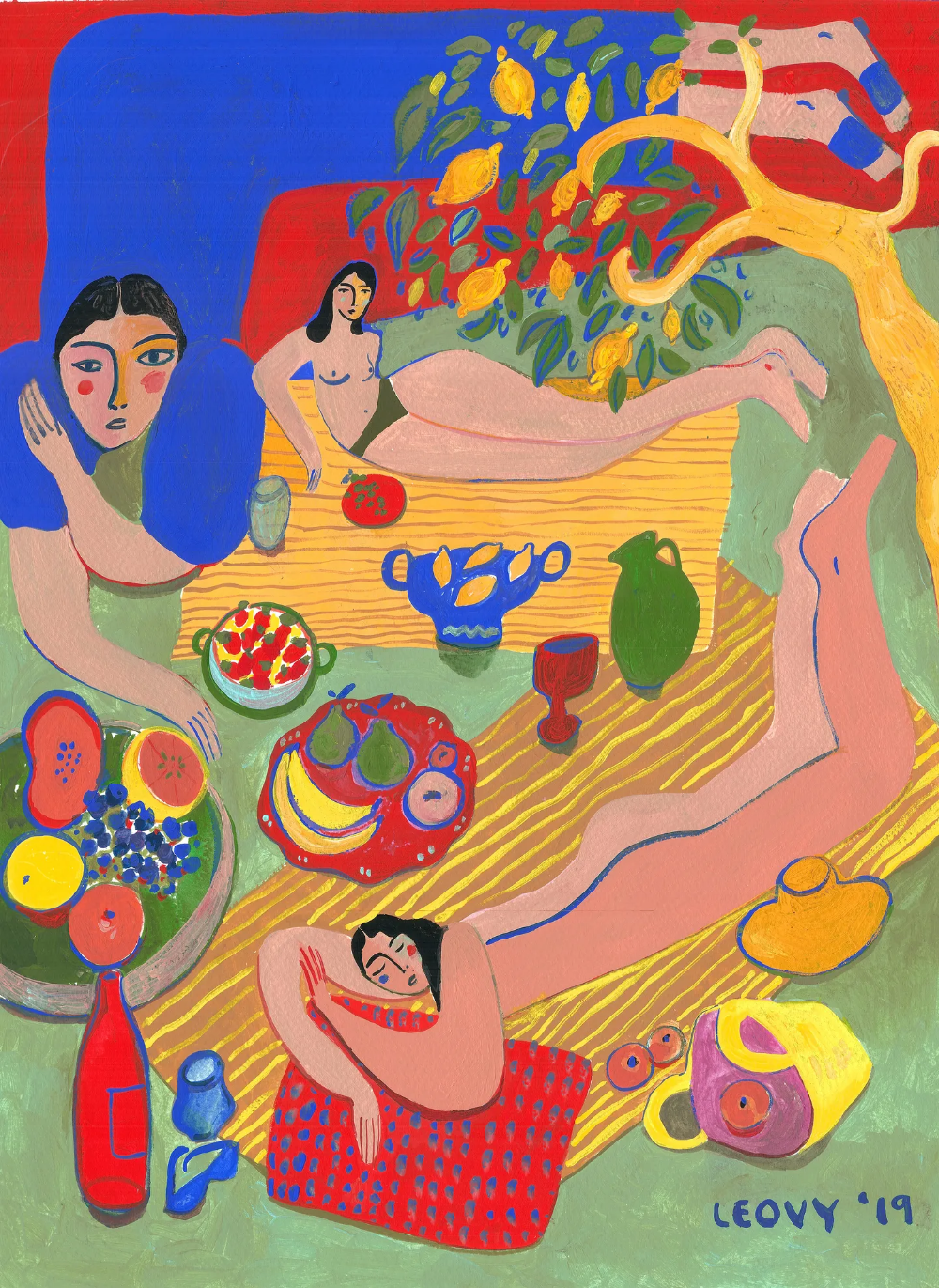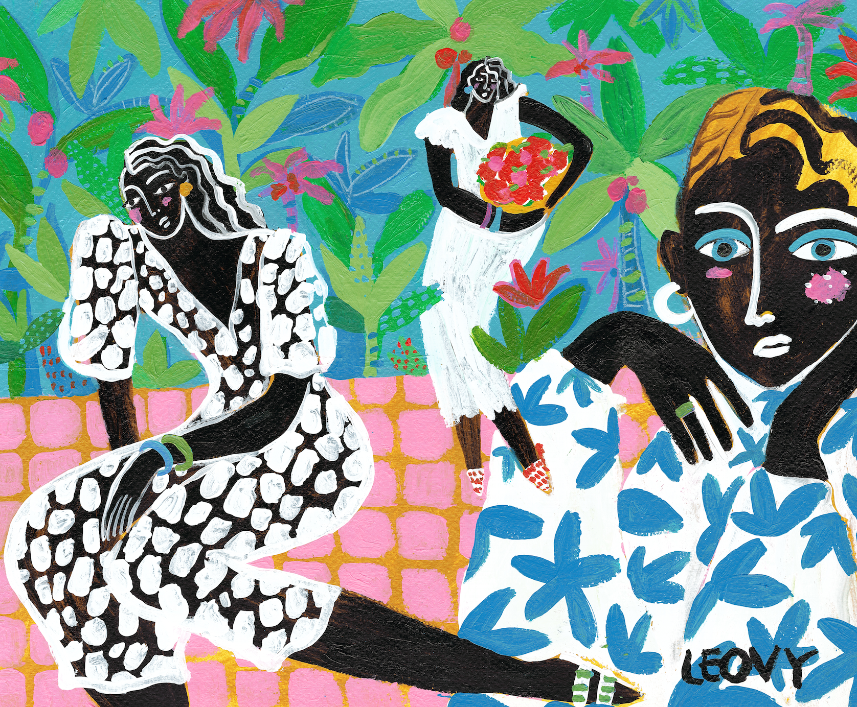 It’s hard not to smile when looking at Ana Leovy Perez’s paintings. Through bold caricatures and colors, the Mexican artista has created vibrant worlds that explore her views on internal and external beauty. Upon looking at Ana’s work, you will notice that the people in her paintings are diverse – ranging in all shapes, skin-tones and sizes – harmoniously coexisting in the bright and wondrous worlds she has created for them. By challenging the conventional ideal of the human form through her paintings, Ana is sending a message to the world that diversity is something to be embraced and celebrated, opposed to being something that can divide us.