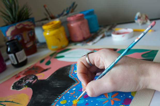 A recurring theme throughout Ana’s paintings is the presence of strong and vivacious female characters, many of whom are based on real-life women who have served as great sources of inspiration to Ana, including writer Clarissa Pinkola, illustrator Carla Fuentes