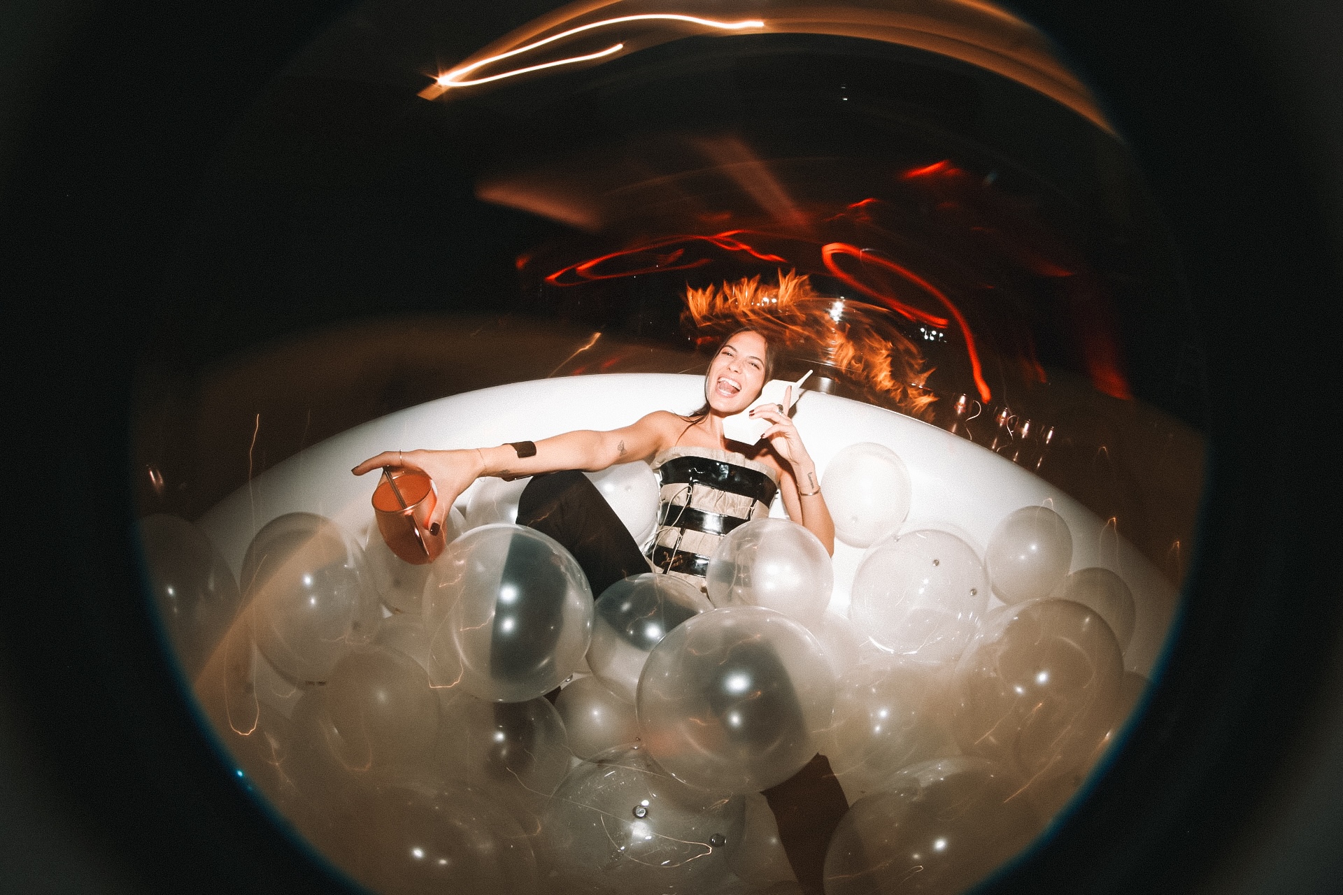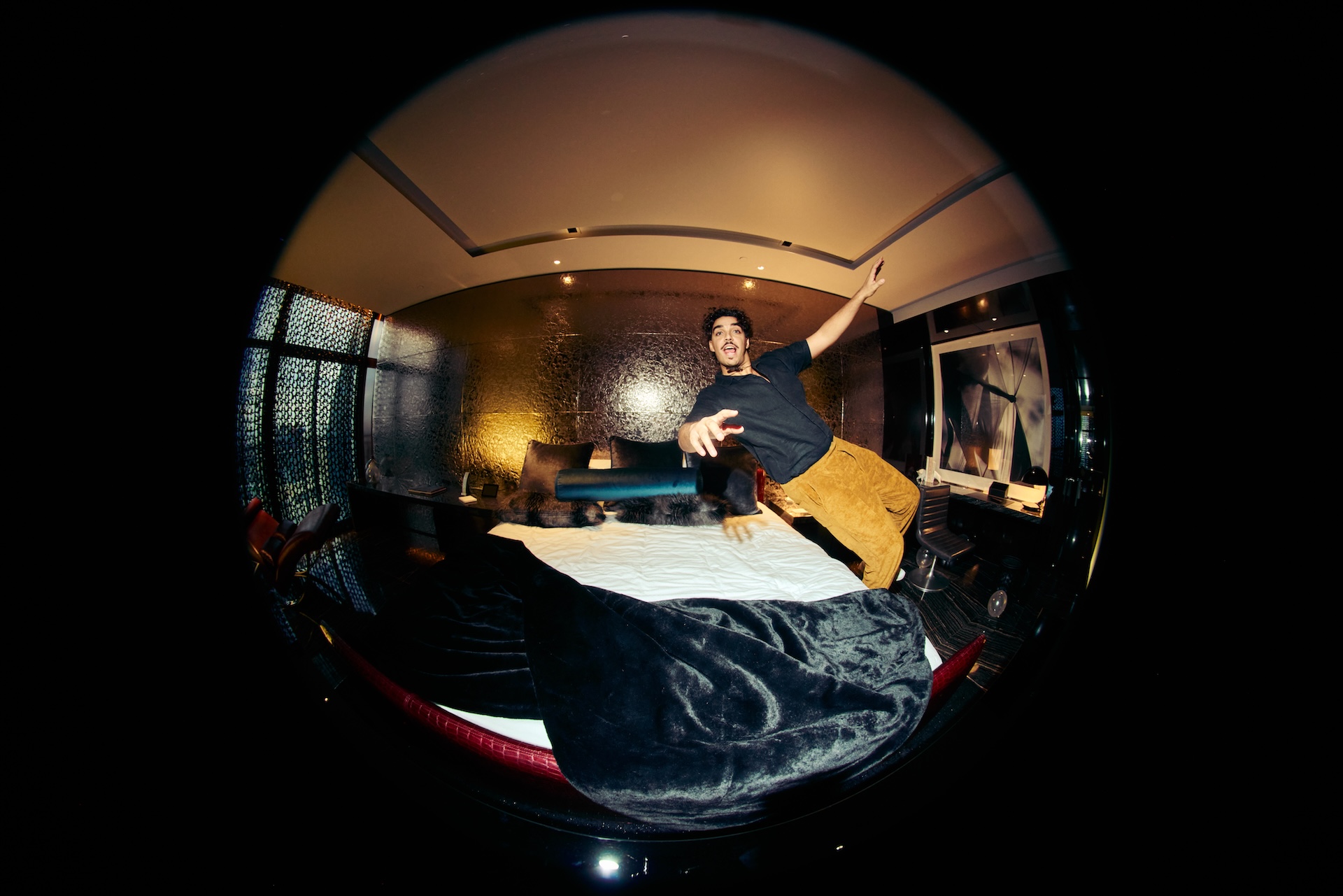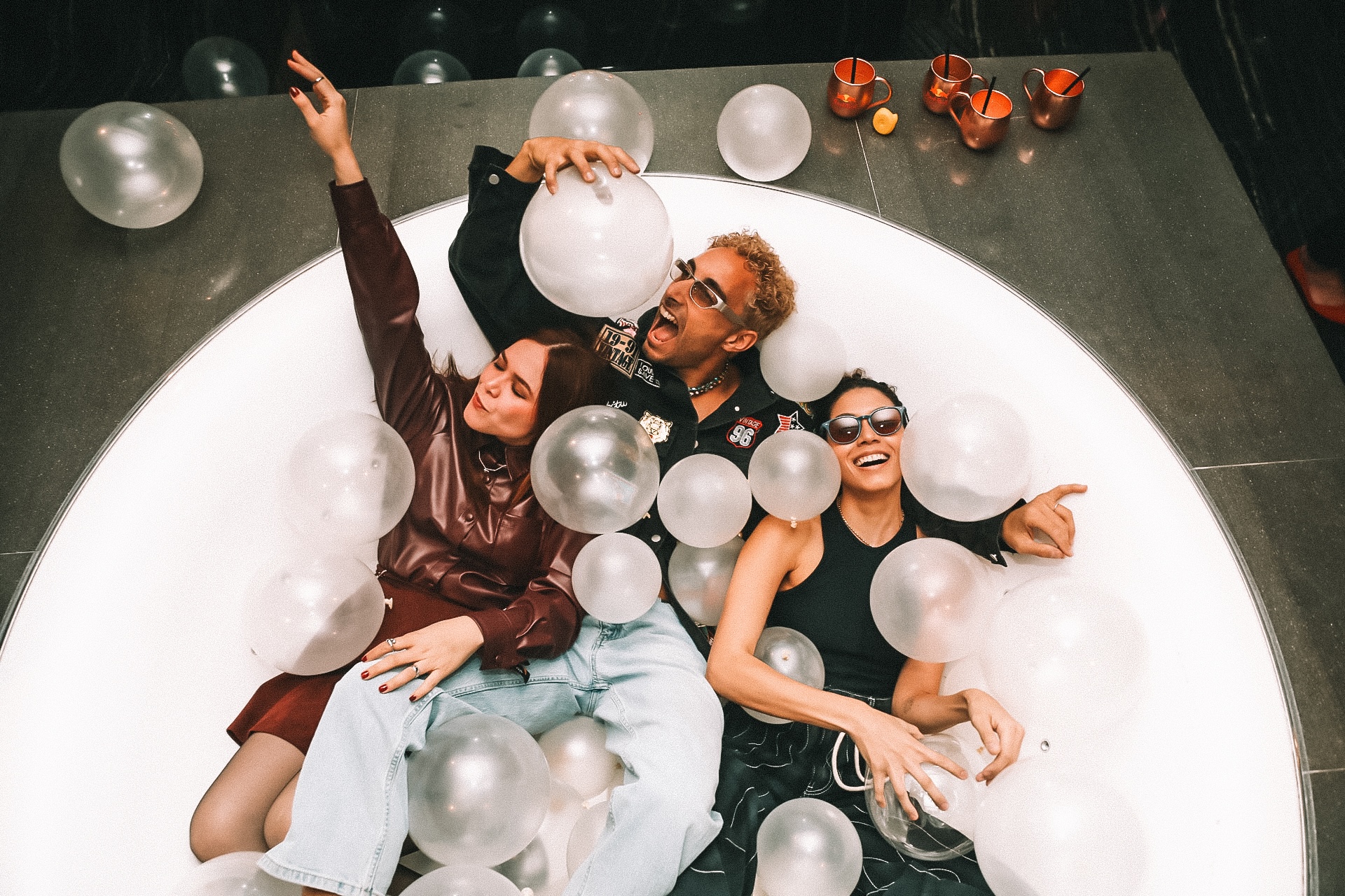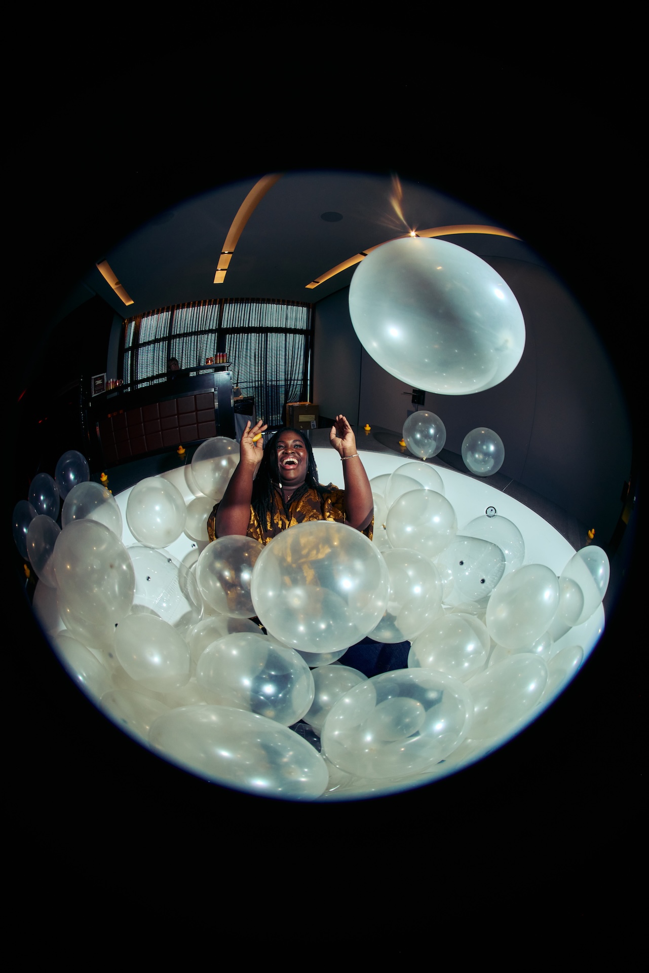 Throughout the day, Hotel Tigre transformed into a creative haven in the sky; an oasis where the skyline served as our backdrop, but the artists were the ones who illuminated the room. Musicians, producers, vocalists, and cultural storytellers poured in and out of the space, each carrying their own stories, hopes, and emotions ahead of Latin Music’s biggest week. The energy shifted constantly: soft in moments of reflection, electric during bursts of reunion, and deeply honest in the conversations that unfolded around the room. From the bubble bath photo moment with Adrián Quesada to the candid, heartfelt exchanges scattered throughout the day, the sense of community was unmistakable.