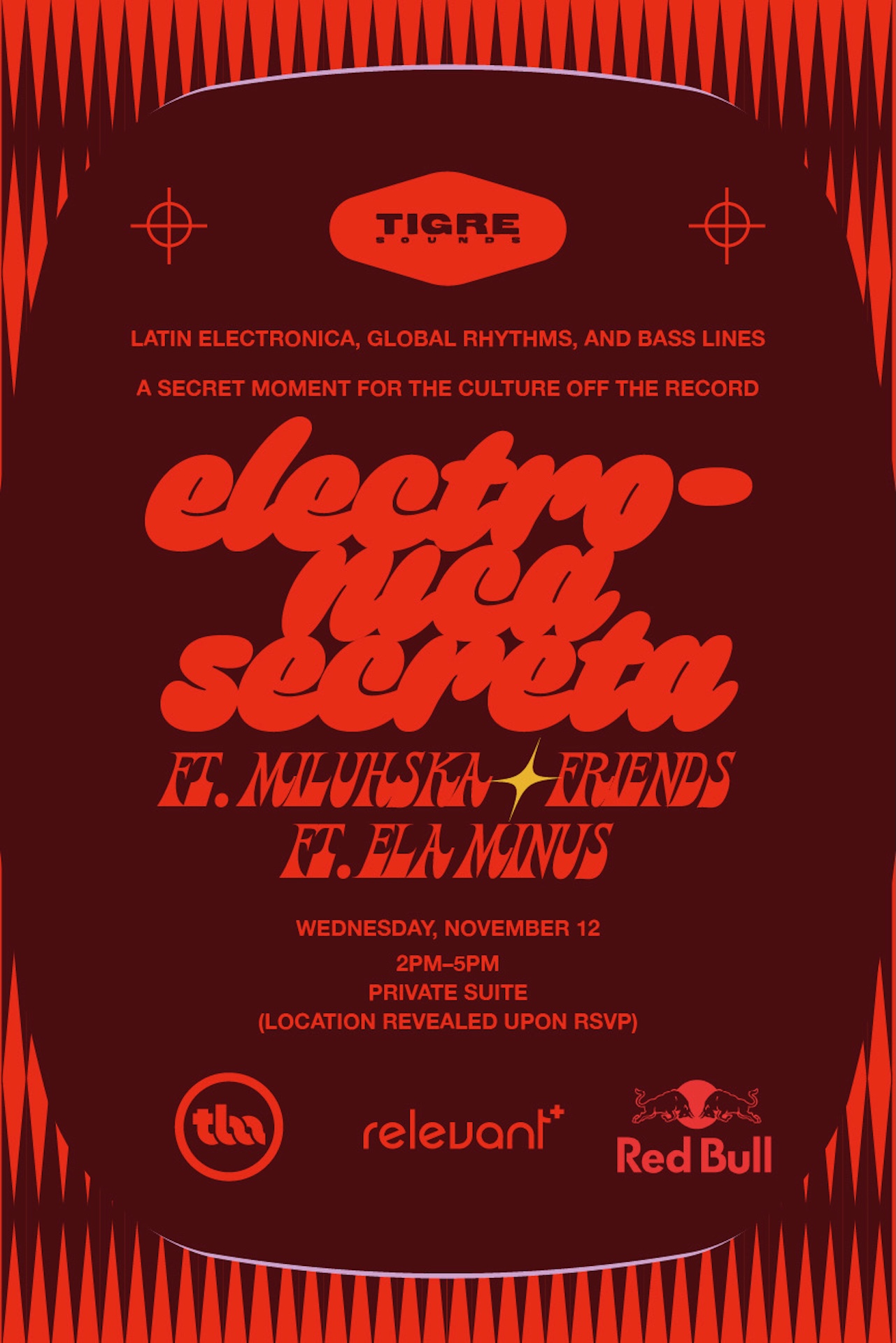 Other soulful drop-ins included Tato Marenco, Trooko, Mr. Naisgai, Dav Julca, Janeiro and Las Migas, who took home the Latin Grammy for Best Flamenco Album the day after. As afternoon slipped into evening, the lights dimmed, the sounds rose, and anticipation built while the day evolved into Electrónica Secreta, powered by Total Wireless and Relevant+. What began as an intimate creative haven transformed into a late-day pulse. Miluhska led the way with her signature latintronic groove, setting the tone for a night of sonic expression. Then, the illustrious Ela Minus appeared with a surprise performance, sending the room into a surge of mystique. Friends danced next to producers, artists next to their peers, and the entire Cueva swayed like a single body.