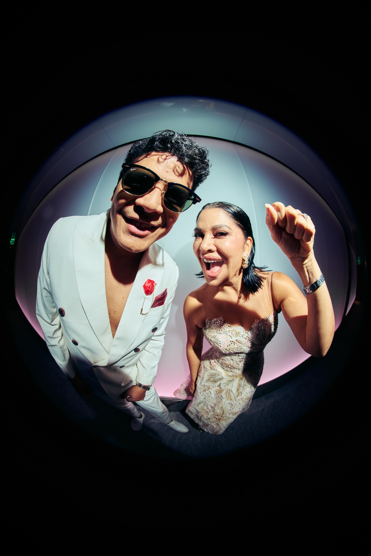 Among the first to arrive was Spain’s Flamenco powerhouse, Kiki Morente, whose presence immediately grounded the wrap-around terrace in something visceral. To Kiki, the ocean separating Spain and Latin America is nothing more than an imaginary line. “Estoy súper feliz… poder compartir con tantos compañeros,” he told us — grateful simply to be surrounded by fellow creatives. Then he added, “En mí provoca que la sangre hierva… venimos de la misma raíz… como humanos.” His words echoed through the suite, reminding us that the bonds between our cultures are as real as the rhythms that connect us.